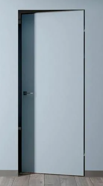 Дверь под покраску в скрытом коробе с алюминиевой кромкой. Система REVERSE - внутреннее открывание двери