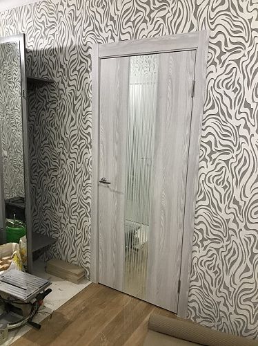 Дверь ПО EXZ 6E Клен айс стекло зеркало с рисунком из Экошпона COVERFLEX (Двери Нева) в с установкой и доставкой