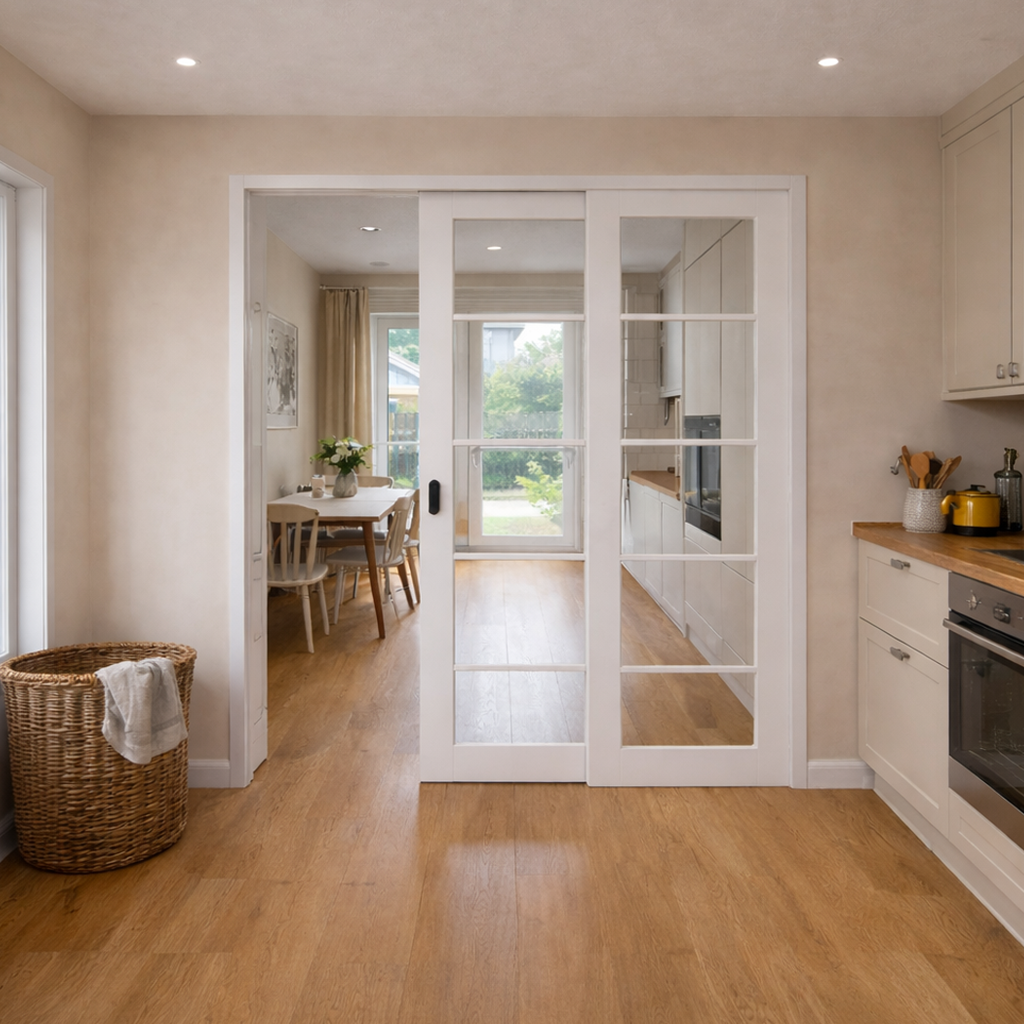 Пенал, предназначенный для установки двух полотен обрамлённых доборами и наличниками в оштукатуренный проём, сдвигающихся друг за другом. Подходит для монтажа в стены толщиной до 200 мм. Может использоваться при новом строительстве или ремонте.
